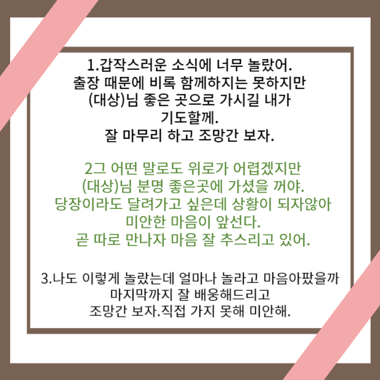 (친구나 후배)방문하거나 방문하고 나서 문자예시 (친구나 후배)갑작스러운 부고에 참석이 어려운경우