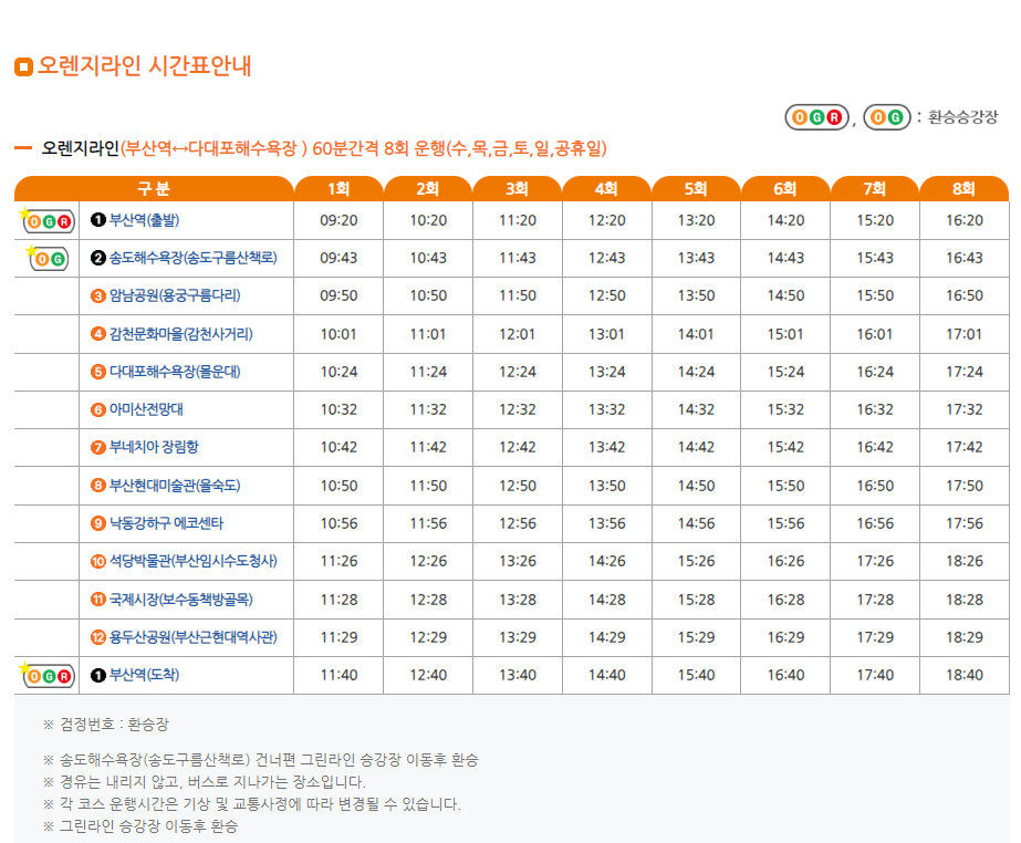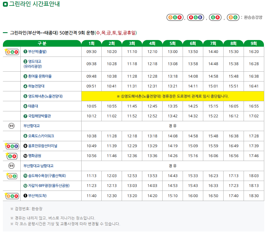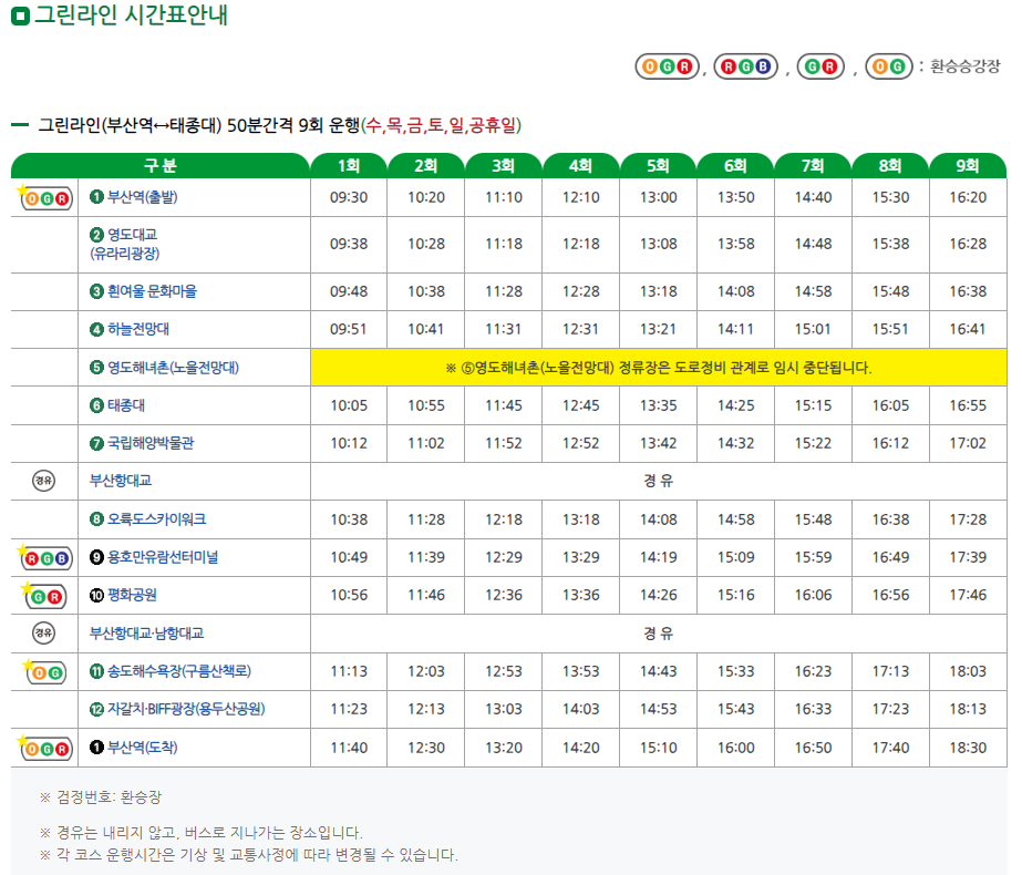 수요일부터 일요일 까지 운행하니 참고하시길 바랍니다.