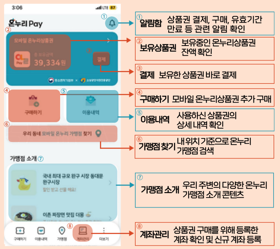 구매방법은 온누리 상품권 앱을 설치하여야 합니다.