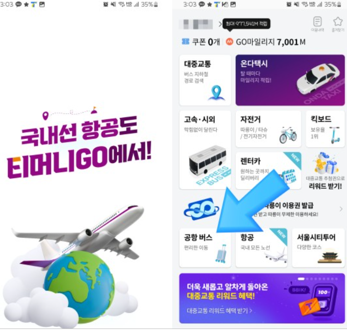 인천공항버스예매를 위해서는 버스타고와 티머니고 2가지가 있습니다.