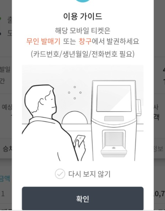 여기서 중요한건 꼭 모바일 티켓은 무인 발매기에서 종이로 발권하셔야 합니다.