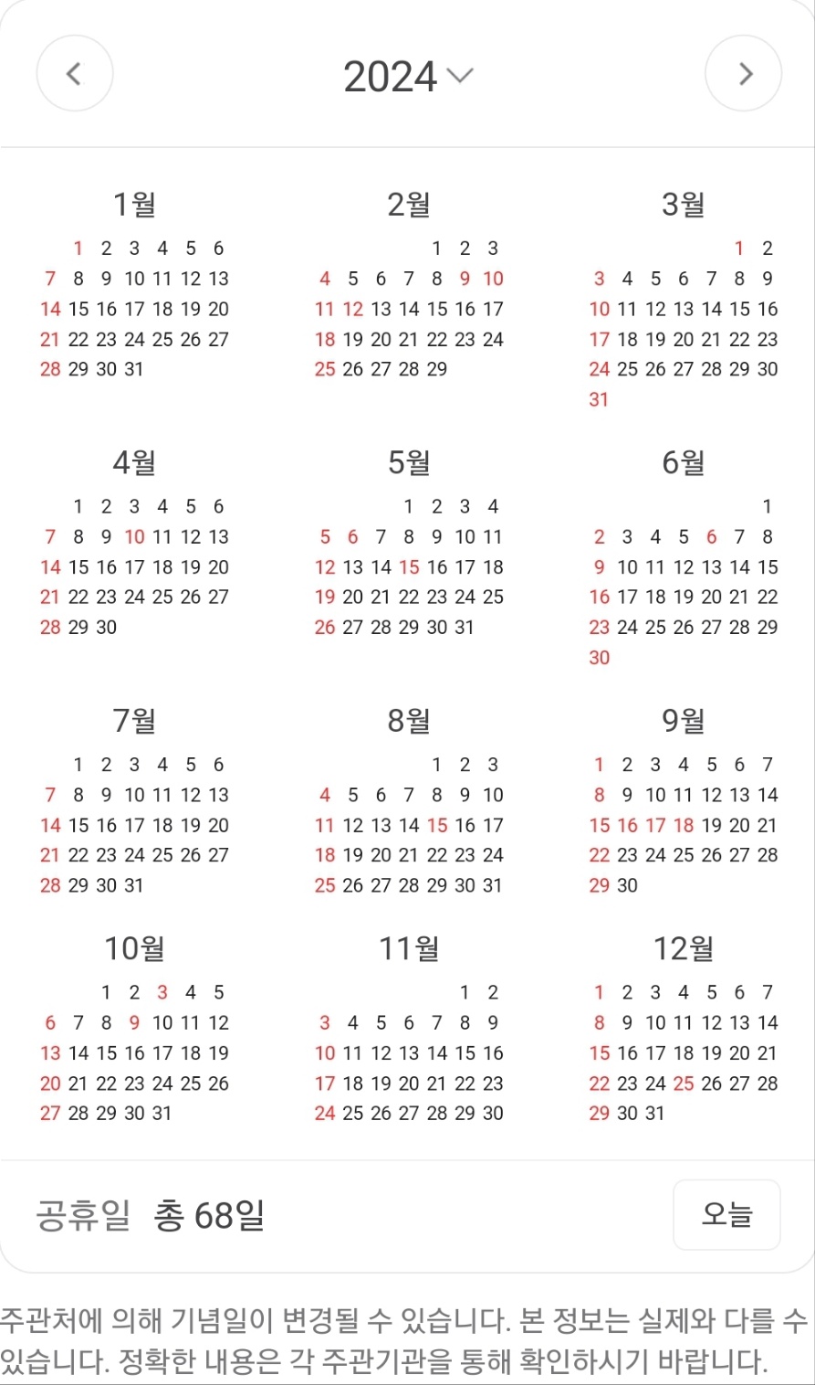 12일:대체공휴일(월요일)
