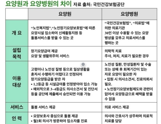 일단, 요양병원과 요양원은 비슷해 보이지만 설립목적이나 성격의 차이가 있어 필요하시다면